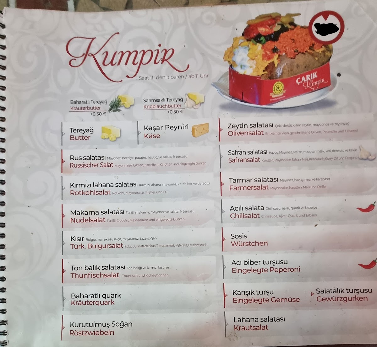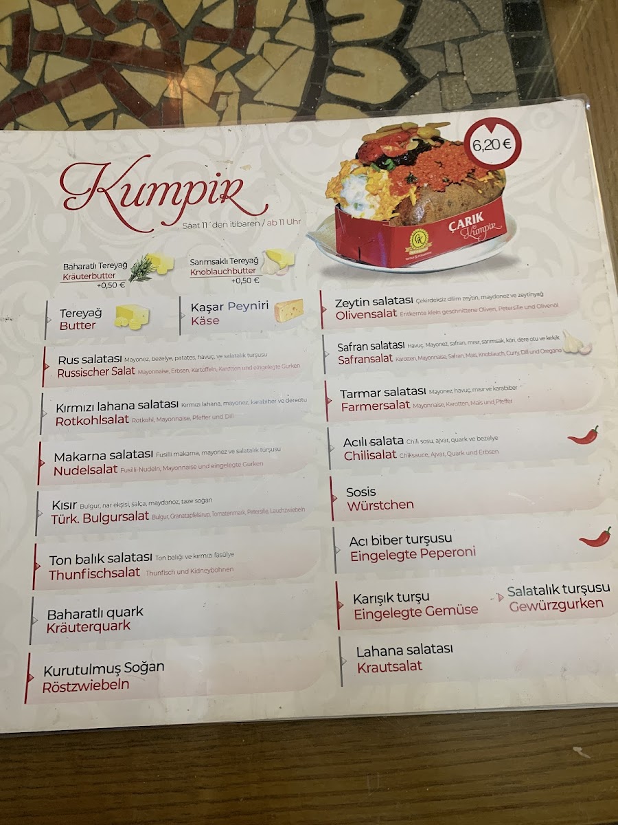 Welcome to Carik Kuruyemis & Cafe, a delightful culinary gem nestled in the heart of Berlin at Mullerstraße 39. This eatery specializes in the beloved Turkish dish, kumpir, a baked potato loaded with an impressive array of 20 toppings—from savory meats to fresh vegetables—guaranteeing satisfaction for all palates.